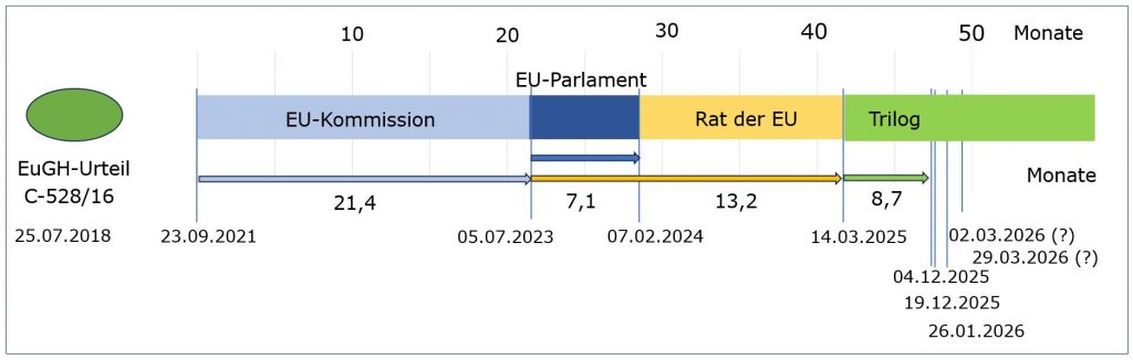 Nach 41,7 Monaten kann nun das Prozedere in der Gesetzgebung weitergehen und zwar im Trilog-Verfahren.